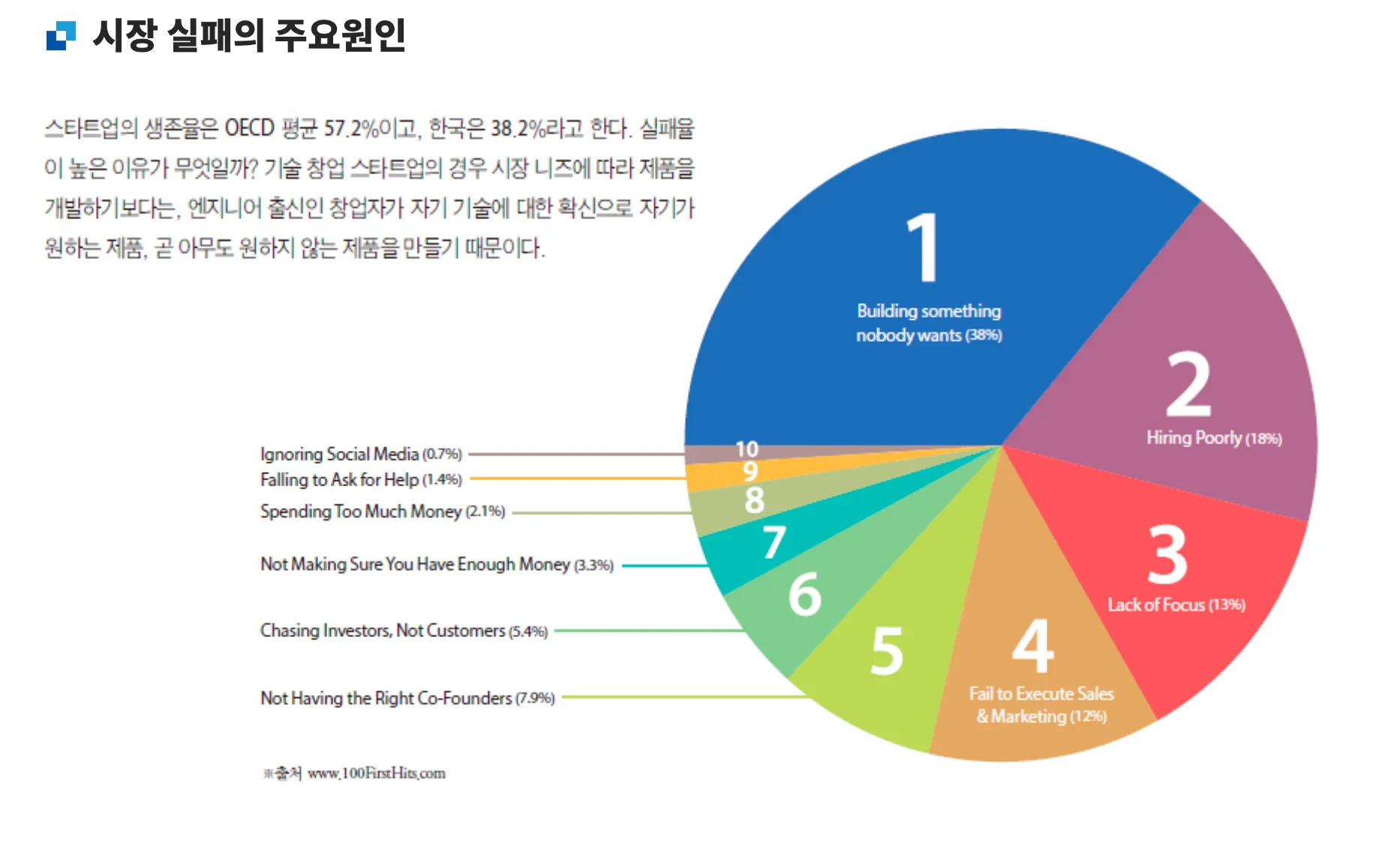 실제로 약 90%의 창업자는 필요없는 제품을 만들기 때문에 실패합니다.